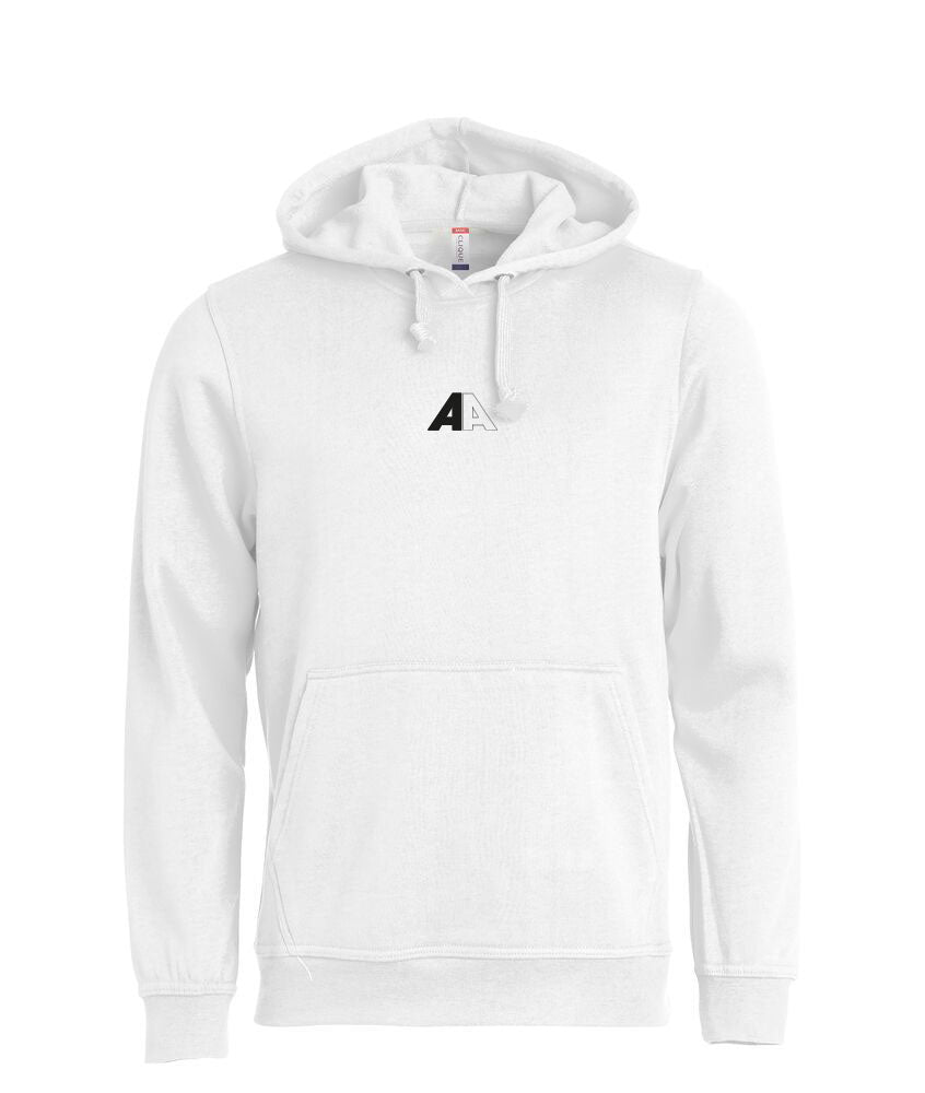 Official Tungevaag merchandise White Hoodie with Horizontal print in the back and emblem Tungevaag logo in front.
