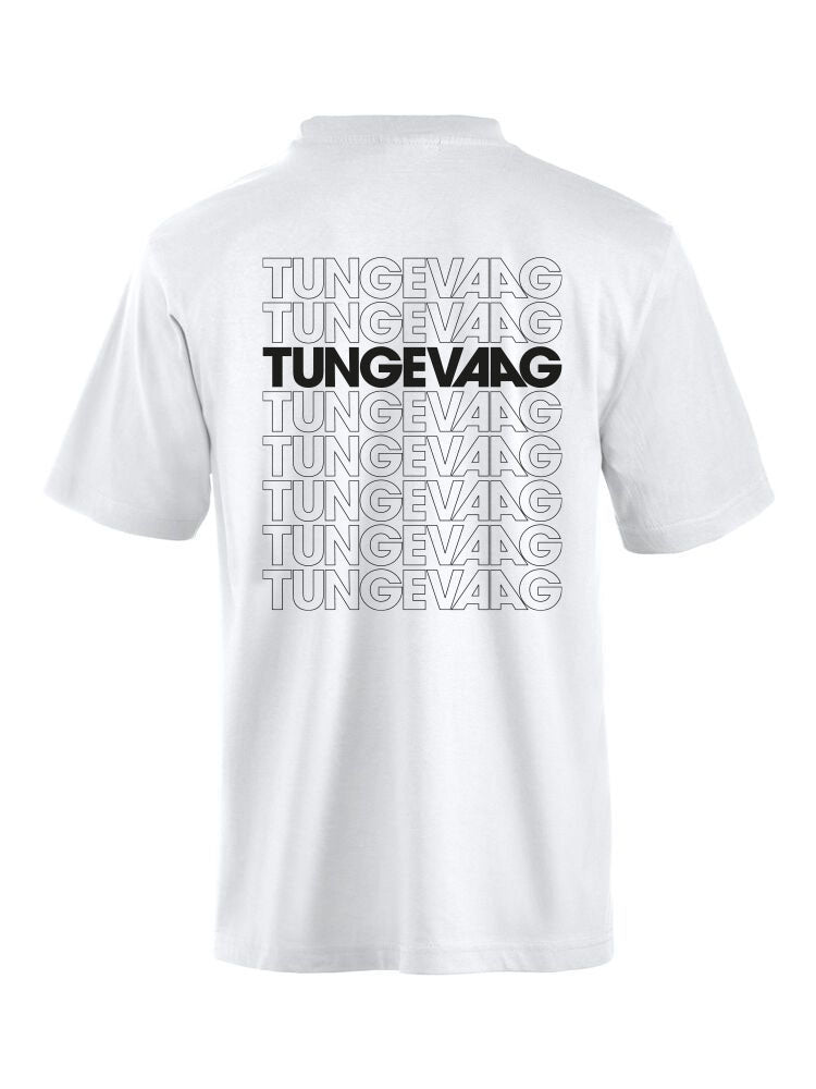 Official Tungevaag merchandise White T-shirt with Horizontal print in the back and emblem Tungevaag logo in front.
