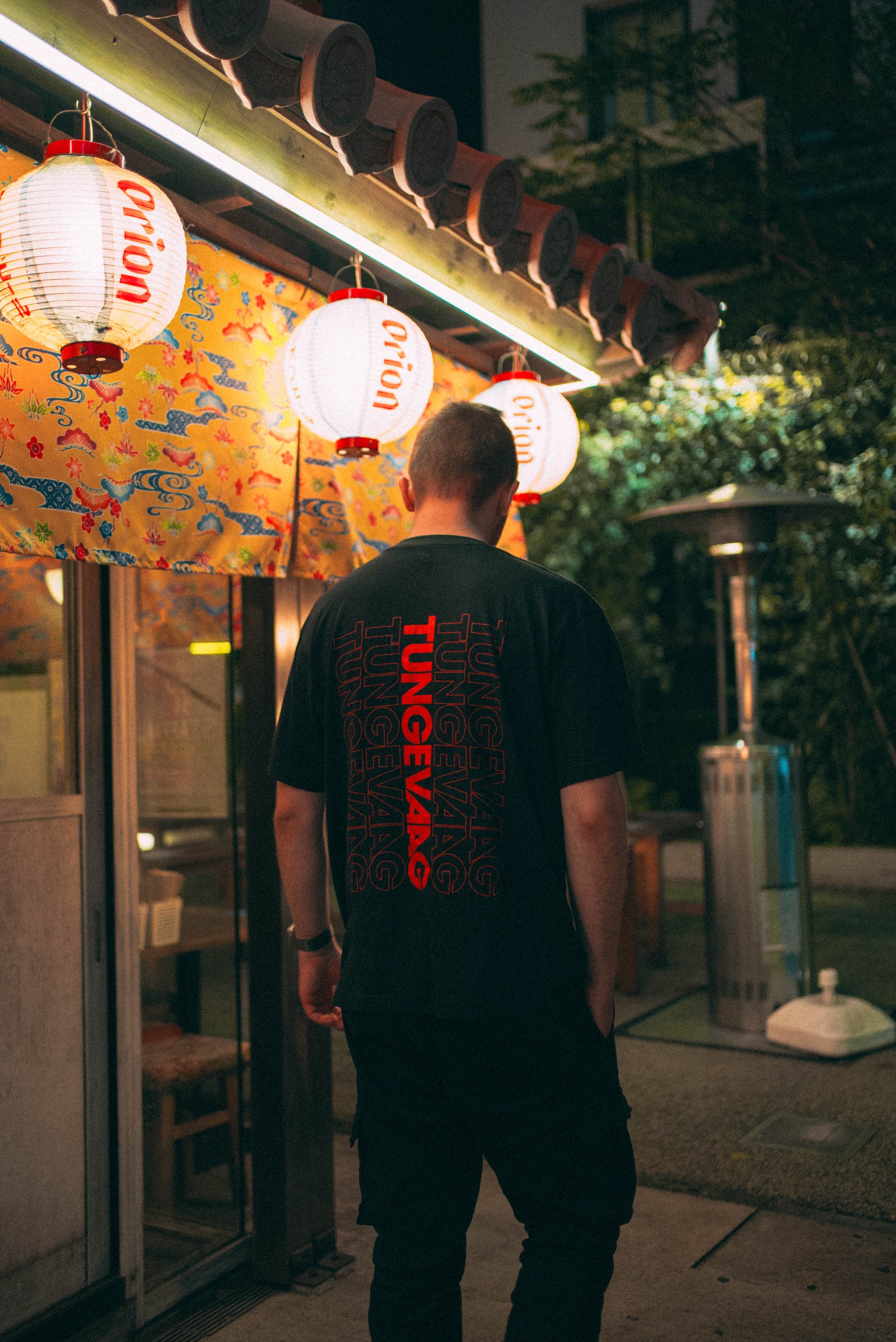 Official Tungevaag merchandise Black T-shirt with Red Vertical print in the back and emblem Tungevaag logo in front.